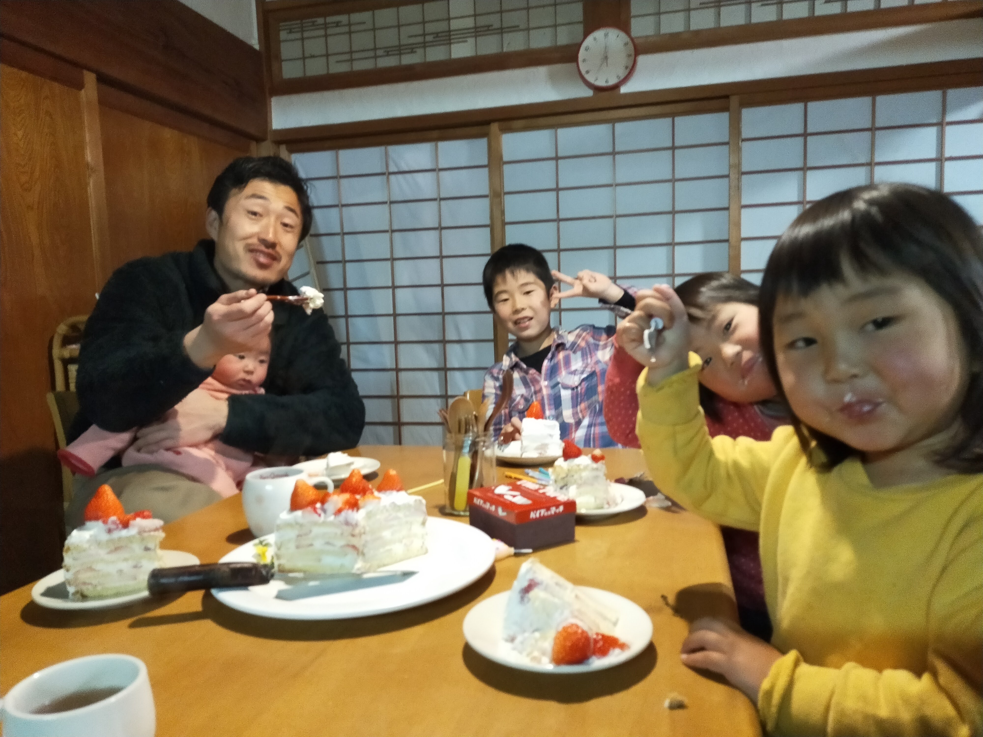 楓ちゃんがロウソクをセットしてくれたり、点火してくれたり、張り切ってやっていました。いざ、フーっと吹き消す場面でもしっかりと我慢して泰ちゃんに消させてあげていました。