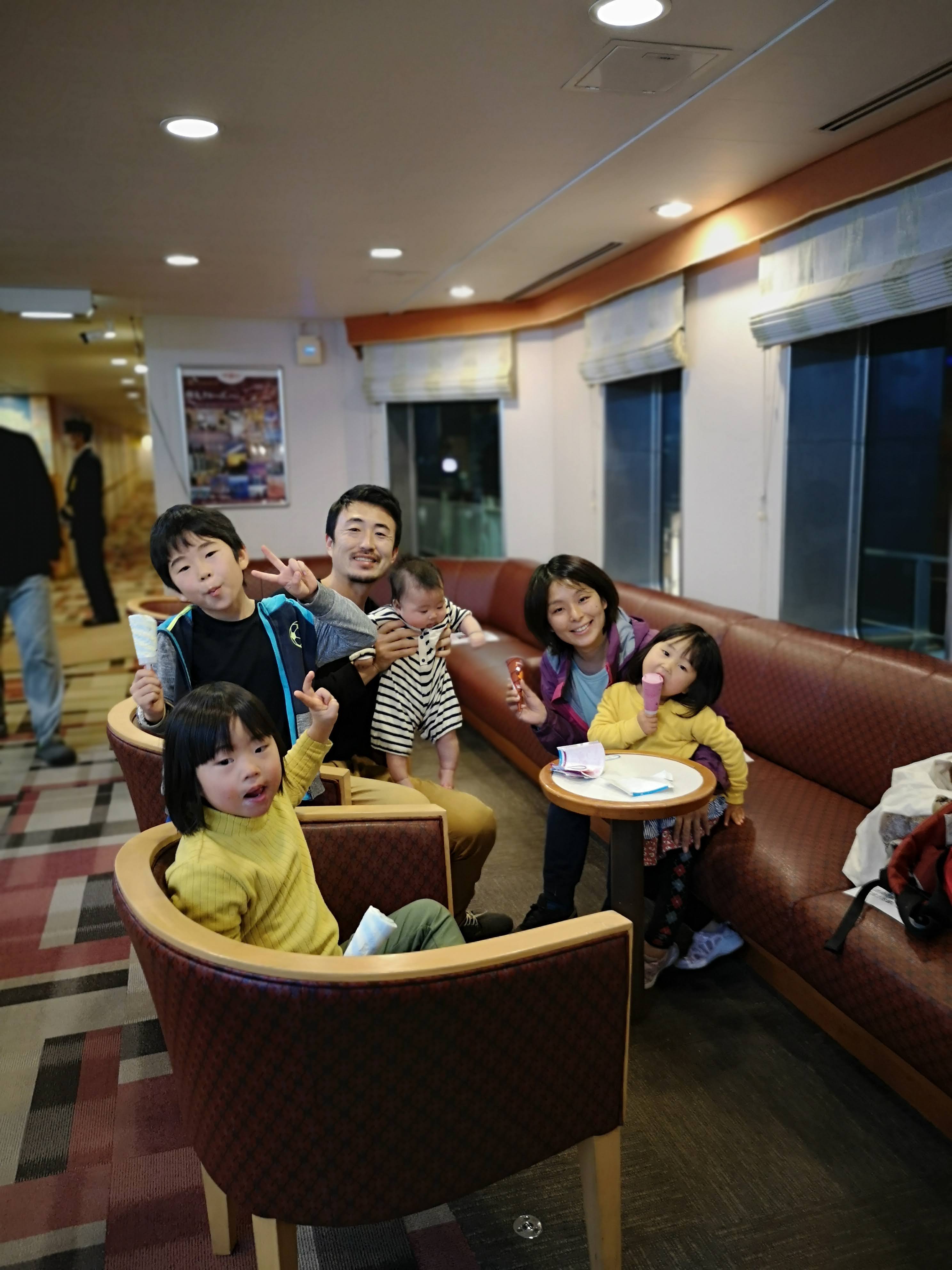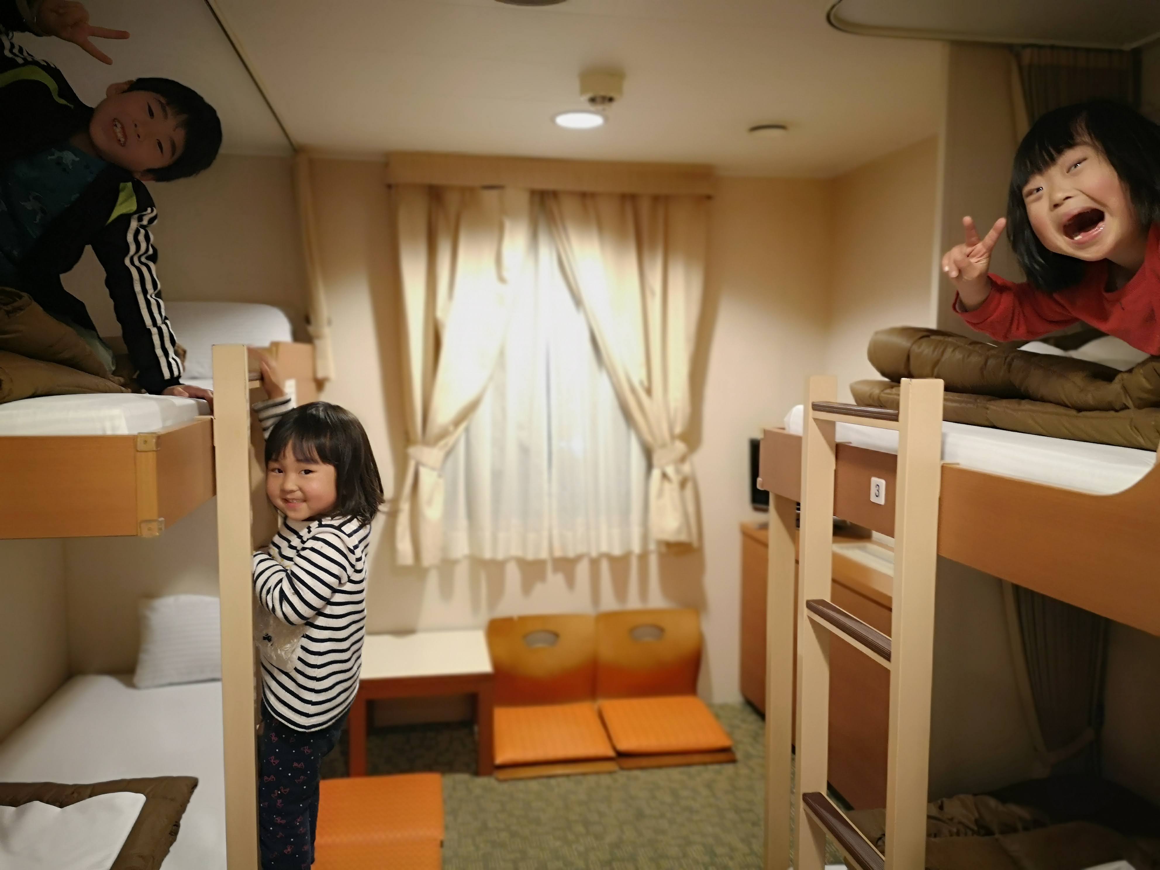 広いし、船内ブラブラと立ち歩けるし、夜ゆっくり寝ている間に移動できるし、車も一緒に移動出来るし。