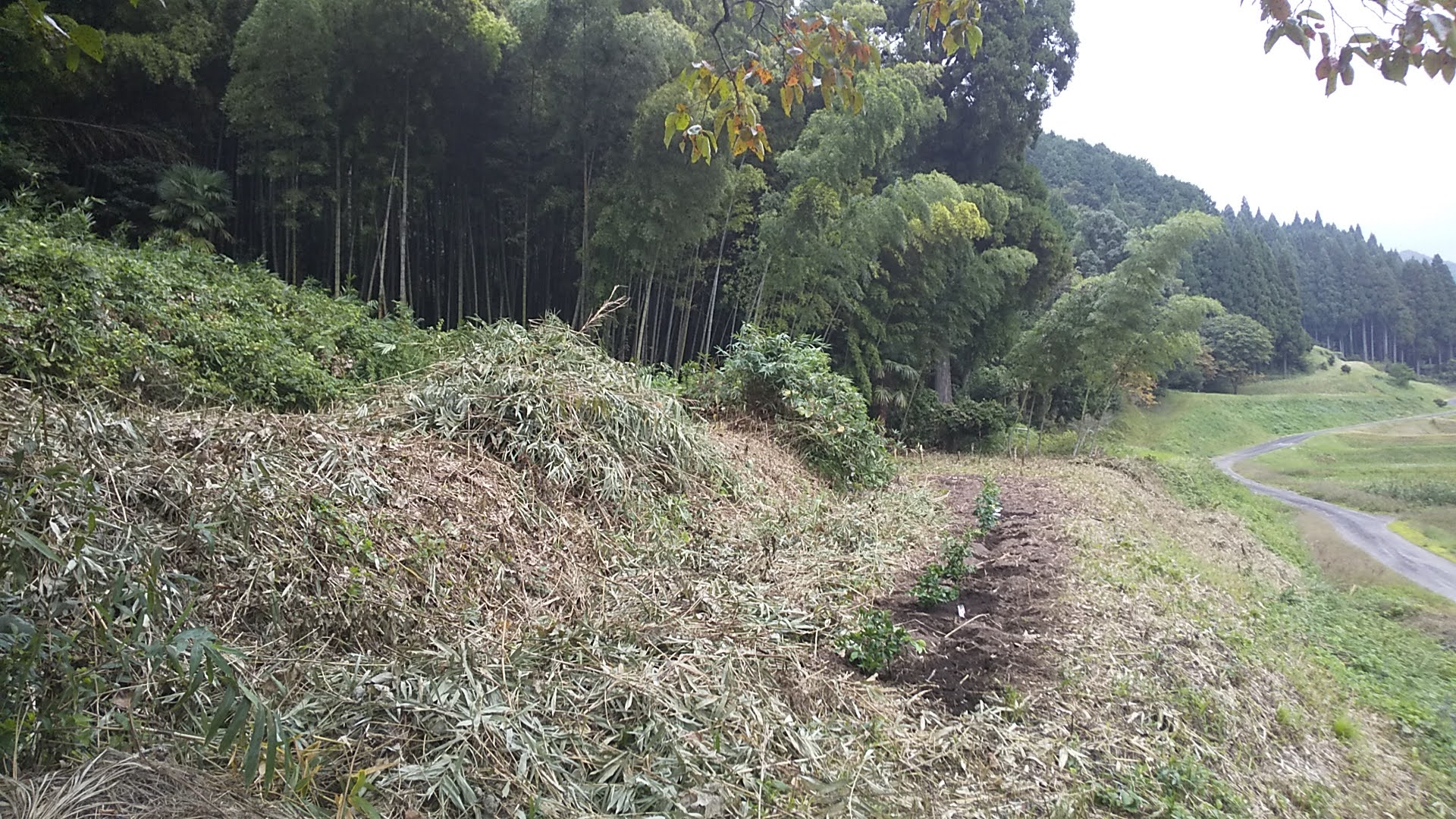 中段、上段には花の綺麗な木(桜・梅・桃など?)を植えたり、栃やドングリの木を植えても面白いかなと考えています。