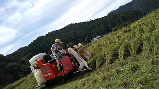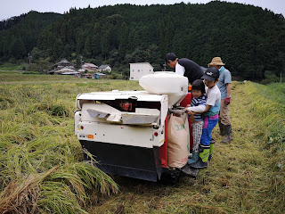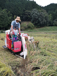 早いと言っても、今回は稲が倒れていたり、大きな田んぼだったので、2時間では終わらず、翌日10時からまた稲刈り再開。(その日の午前中に機械屋さんが再度整備してくれて(タンクの清掃)調子はgoodに)