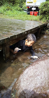 キャンプの帰りは川に入って汗を流したり、前々から気になっていた場所に行ってみたり。