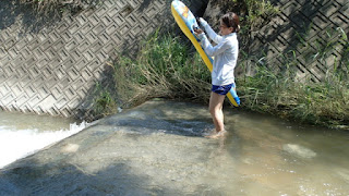 いつも行く隣町の川へ行くのかなと思っていたが、泰ちゃんが「そこの川で良いじゃん」と言い出し、「そりゃあそこの川だったら歩いて行けるし、すぐに家に帰れるし、それに越したことはないわ!」ということで近所の親水公園で遊ぶことにした。