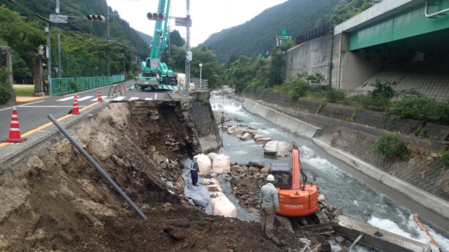 月曜日から保育園や学校なんかは再開し、人々も出勤なんかして日常の生活に戻っていったわけだが、えぐられた河川・陥没した道路なんかを見るとその大雨の深刻さを再度確認させられる。