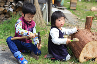 楓ちゃんも自分の木槌でトントン一緒にしていました。