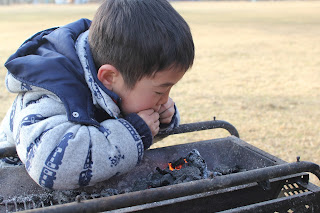 炭を使っての料理、暗くなったら無理をせずに大人しく寝る。朝起きたら泰ちゃんもすぐに外に出て遊ぶことが出来る。