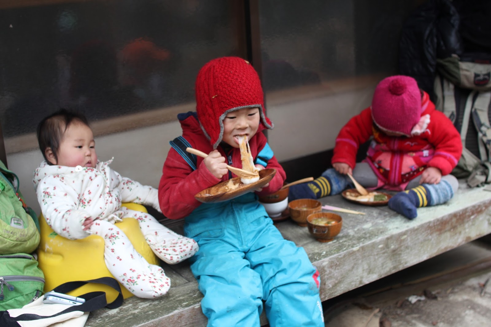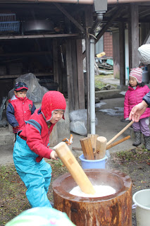 先日はお兄ちゃんと一緒に森のようちえんの餅つきに参加させてもらいました。