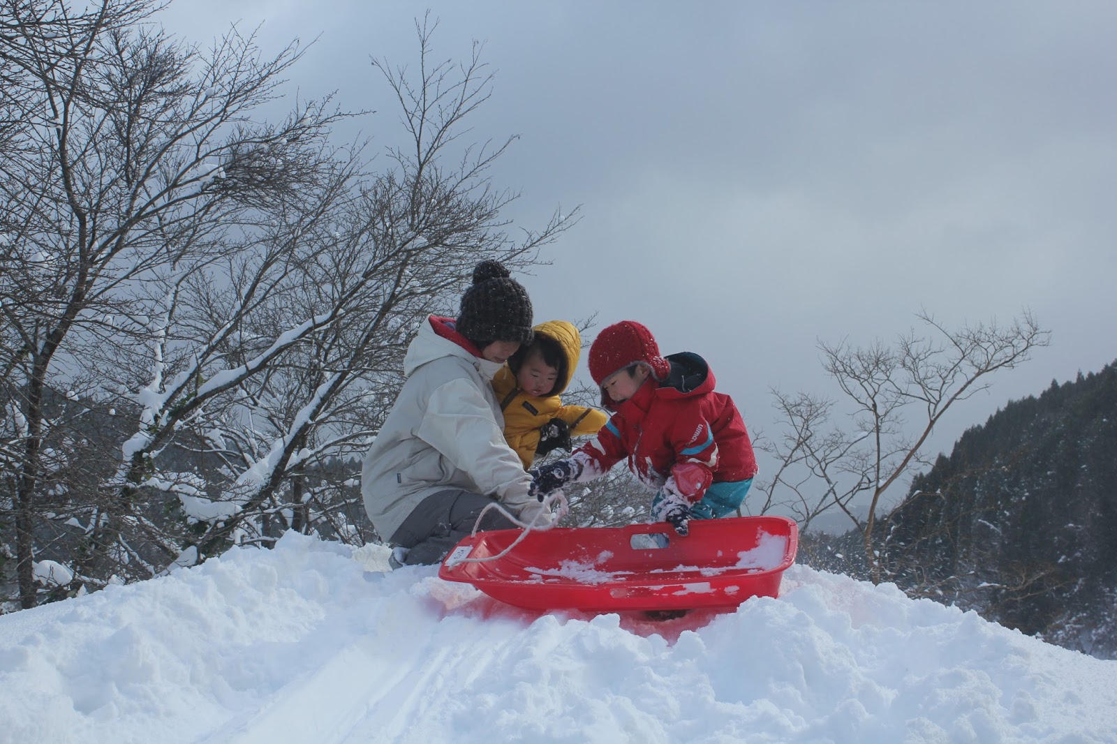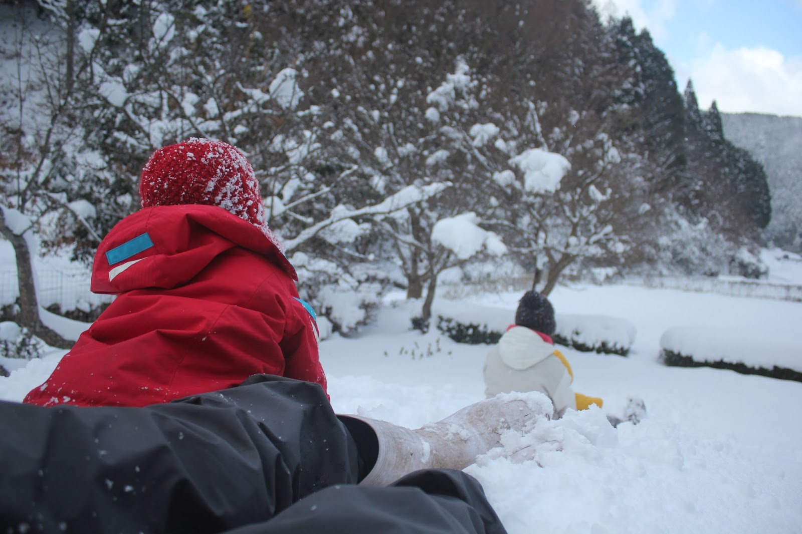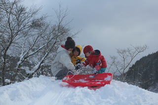 休日にみんなでちょっとした雪遊び。