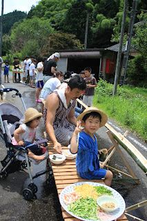 子どものいる家庭+αで暑い晴れた日に、冷たいそうめん+αを流して涼みました。