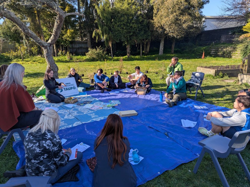 「環境保護・野外教育」がテーマの研修でしたが、同じような目的意識を持った人たちが各地から集まり、ブルーシートを広げて陽だまりの中研修をするってなんてハッピーな研修だろうと感心しました。